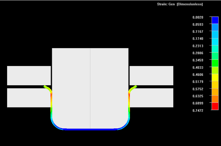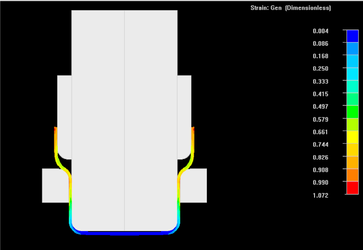 NAGSIM_SM.2D is a finite element software program for the computer simulation of two dimensional sheet forming processes such as deep drawing, stretching and bending. It can simulate large plastic deformation of the deforming part as well as elastic deformation of the tools. It compliments NAGFORM_SHEET program for obtaining the forming progression for deep drawn parts. NAGFORM_SHEET program uses design logic, forming rules and simple analyses to come up with forming design concepts. NAGSIM_SM.2D can be used to validate and improve the concept designs.